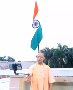 सीएम योगी ने तिरंगे के साथ ली सेल्फी