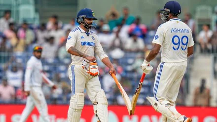 खबर इंडिया की।भारत ने बांग्लादेश के खिलाफ चेन्नई में शुक्रवार से शुरू हुए पहले टेस्ट मैच के पहले दिन 6 विकेट खोकर 339 रन बना लिए। टीम ने एक समय 144 रन पर 6 विकेट गंवा दिए थे, लेकिन यहां से रवींद्र जडेजा और रविचंद्रन अश्विन ने नाबाद 195 रन की पार्टनरशिप कर दी। अश्विन ने होम ग्राउंड पर सेंचुरी लगाई, जबकि जडेजा 86 रन बनाकर नॉटआउट रहे।यशस्वी जायसवाल ने 56, ऋषभ पंत ने 39 और केएल राहुल ने 16 रन बनाए। रोहित शर्मा और विराट 6-6 रन बनाकर आउट हुए, वहीं शुभमन गिल खाता भी नहीं खोल सके। बांग्लादेश से हसन महमूद ने 4 विकेट लिए। 1-1 सफलता मेहदी हसन मिराज और नाहिद राणा को मिली। दूसरे दिन का शनिवार को सुबह 9:30 बजे से शुरू होगा।
