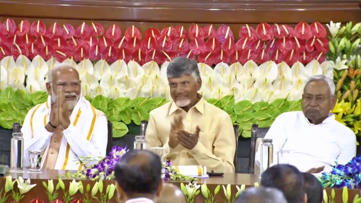 नीतीश कुमार ने अपने अनुमोदन भाषण के दौरान कहा, ’10 साल से ये प्रधानमंत्री हैं और ये फिर प्रधानमंत्री होने जा रहे हैं. पूरा भरोसा है कि जो कुछ भी बचना है, ये सब पूरा कर देंगे. हर राज्य का जो है, सब पूरा करेंगे. बिना मतलब का बात बोलकर ये लोग कोई काम किए हैं आजतक? बिहार का सब काम हो ही जाएगा, जो बचा हुआ है, जो आप चाहेंगे वो होगा.’ इसके अलावा शपथग्रहण कार्यक्रम को लेकर नीतीश कुमार ने कहा, ‘आपने रविवार को शपथ ग्रहण का कार्यक्रम रखा है. हम तो चाहते हैं आप आज ही प्रधानमंत्री पद की शपथ ले लें.