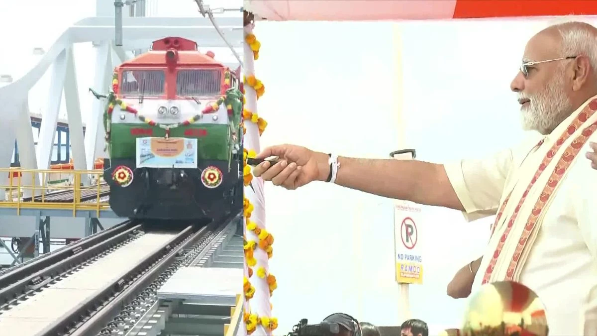 पीएम मोदी ने तमिलनाडु में रामेश्वरम द्वीप को रेलमार्ग से जोड़ने वाले नए पंबन पुल का रविवार को उद्घाटन किया. 2.07 किलोमीटर लंबा ये भारत का पहला वर्टिकल लिफ्ट ब्रिज है. नया पंबन पुल 100 वर्षों तक 80 किलोमीटर प्रति घंटे की गति से ट्रेन परिचालन के लिए उपयुक्त. पीएम मोदी ने 2019 में पंबन ब्रिज का शिलान्यास किया था, और 5 साल में यह समुद्र के ऊपर बनकर तैयार हो गया है.