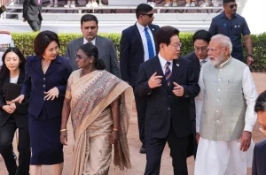 उमाकांत त्रिपाठी।नई दिल्ली में सोमवार को भारत और दक्षिण कोरिया के संबंधों का एक महत्वपूर्ण क्षण देखने को मिला, जब दक्षिण कोरिया के राष्ट्रपति ली जे म्युंग का भव्य स्वागत किया गया। उनका यह तीन दिवसीय राजकीय दौरा दोनों देशों के बीच रणनीतिक साझेदारी को नई दिशा देने वाला माना जा रहा है।