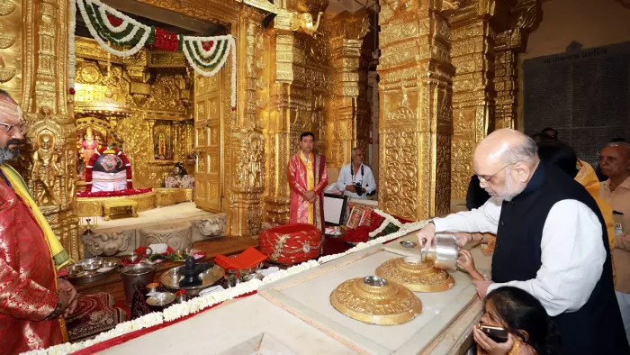 उमाकांत त्रिपाठी।केंद्रीय गृहमंत्री अमित शाह शनिवार को दो दिन के दौरे पर गुजरात पहुंचे। वे अहमदाबाद से पत्नी के साथ सीधे सोमनाथ मंदिर पहुंचे और पूजा-अर्चना की। इसके बाद कोडिनार में चीनी मिल के पुनरुद्धार कार्यक्रम में पहुंचे। कोडिनार में ही उन्होंने करीब 7 हजार किसानों को संबोधित किया।