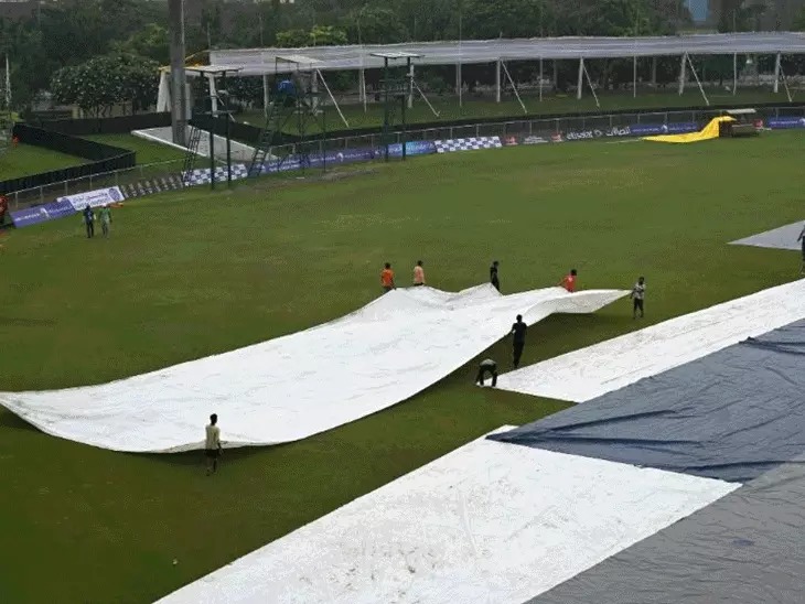 पूरी रात बारिश की वजह से मैदान की बुरी हालत नोएडा में कल (सोमवार) पूरी रात बारिश हुई। इस वजह से आज आउटफील्ड की काफी बुरी हालत हो गई। ग्राउंड्समैन आउटफील्ड इलेक्ट्रिक फैन से सुखाते दिखे। साथ ही कुछ जगह की आउटफील्ड पर आर्टिफिशियल घास भी लगाई गई, लेकिन इससे भी काम नहीं हो सका। पहले दिन टॉस भी नहीं हो सका था इकलौते टेस्ट के पहले दिन बारिश के कारण टॉस भी नहीं हो सका था। सोमवार को रुक-रुककर बारिश होती रही। ऐसे में गीले आउटफील्ड के कारण पहले दिन का खेल रद्द करने का फैसला लिया गया। नोएडा में दो हफ्ते से लगातार बारिश ग्रेटर नोएडा में पिछले दो हफ्ते से लगातार बारिश हो रही है। कल रात भी भारी बारिश हुई थी। ग्राउंड्समैन मैदान को सुपर सॉपर की मदद से ठीक करने में लगे रहे।