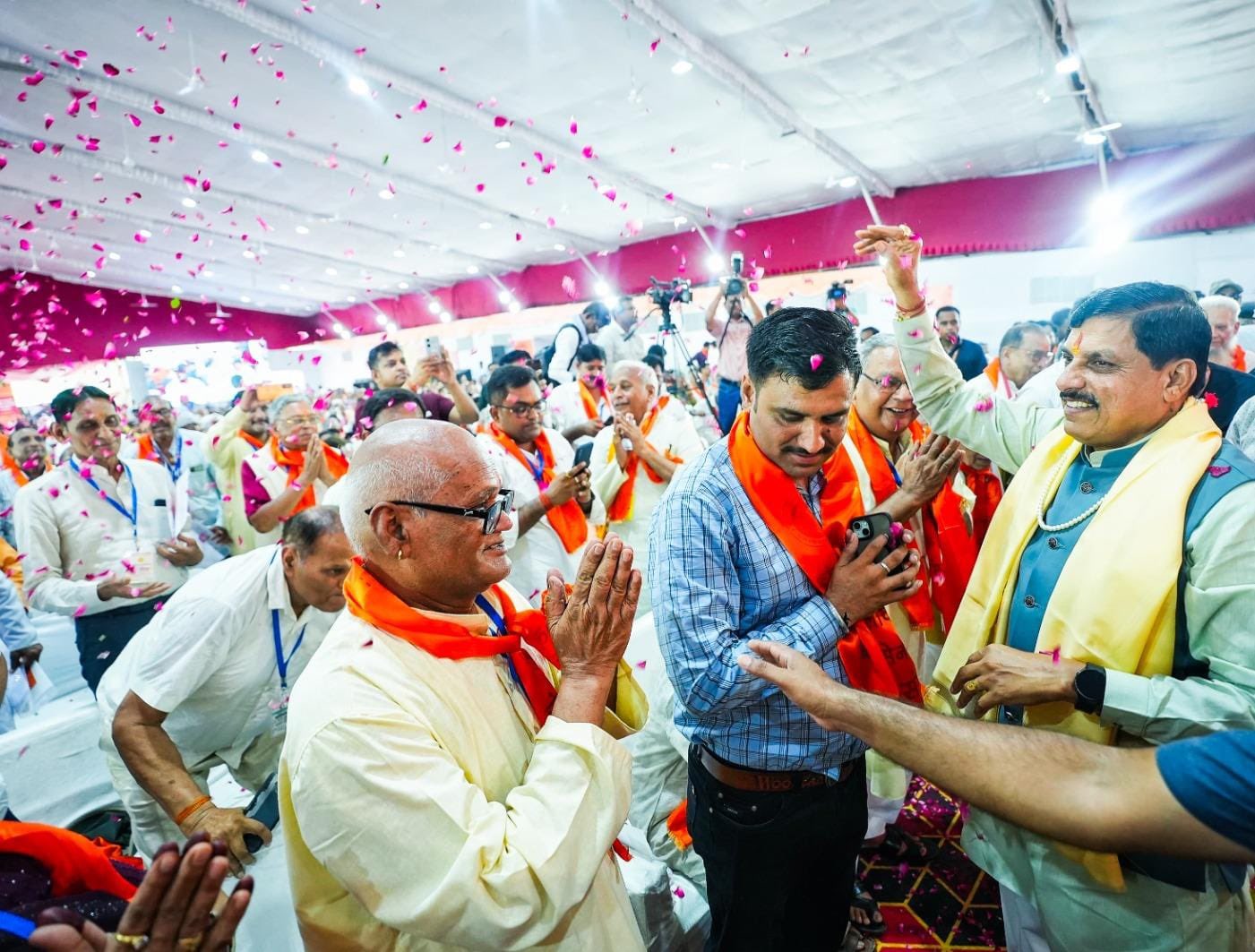 मुख्यमंत्री मोहन यादव ने सीएम हाउस में हुए मीसाबंदियों के कार्यक्रम में ये बड़े ऐलान किए। इस मौके पर प्रदेश भर के 750 मीसाबंदी और उनके परिजन आज सीएम हाउस में मौजूद थे। मुख्यमंत्री डॉ. मोहन यादव ने फूल बरसाकर सभी का स्वागत किया। कार्यक्रम में मीसाबंदियों ने आपातकाल और जेल जाने के संस्मरण भी सबको सुनाए।