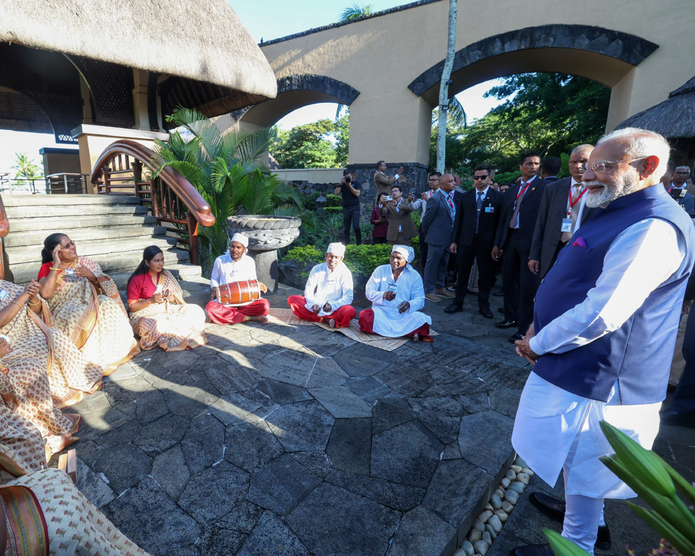 उमाकांत त्रिपाठी।प्रधानमंत्री नरेंद्र मोदी अपनी दो दिन की यात्रा पर मॉरीशस पहुंचे हैं. वहां उनका बिहारी परंपरा से स्वागत किया गया. पीएम के स्वागत के लिए कलाकारों ने पारंपरिक भोजपुरी गीत गावई गाया. राजधानी पोर्ट लुईस में महिला कलाकारों की प्रस्तुति से पीएम मोदी गदगद नजर आए. उन्होंने तालियां बजकर उनका हौंसला बढ़ाया.गीत गावई एक पारंपरिक भोजपुरी संगीत समूह है जो भारत के भोजपुरी क्षेत्र की महिलाओं द्वारा मॉरीशस में लाई गई समृद्ध सांस्कृतिक विरासत का प्रतीक है.